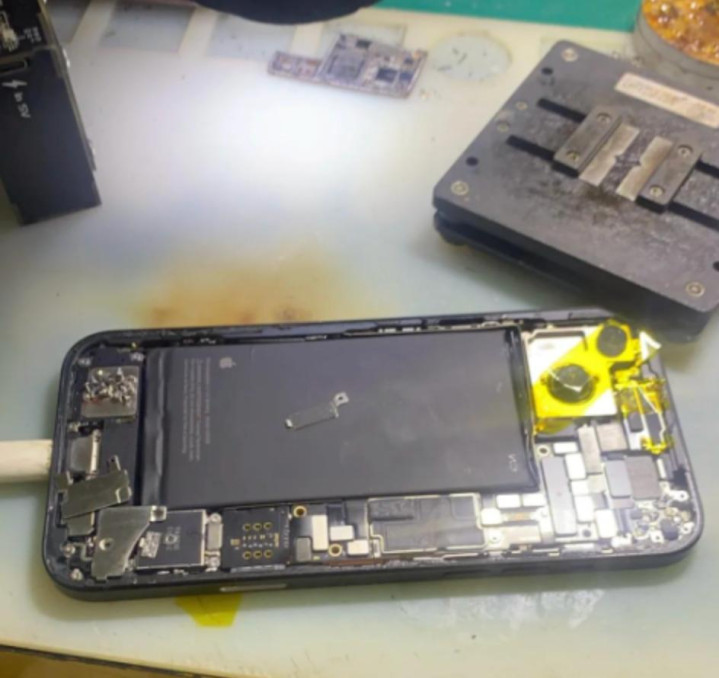 iPhone内部精密得像瑞士手表! 主板上的芯片比米粒小,排线比头发细。扩容手术需要用高温热风枪把原厂硬盘“吹”下来,再把新硬盘精准焊回去。
